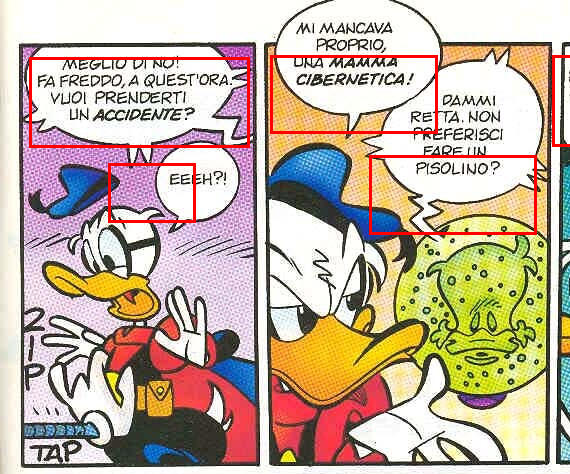 Note that these are translated from Italian (the original language of the comic), so some nuance is lost, but I hope you can get the gist of it anyway.